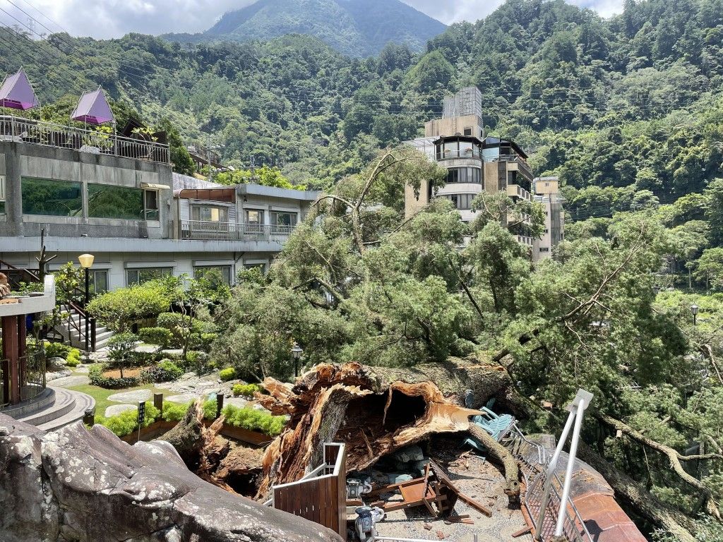 Sebuah pohon pinus Taiwan berusia 1.000 tahun dan 36 meter tumbang, memecahkan jendela di sebuah hotel di Kota Taichung, laporan mengatakan Sabtu (9 Juli 2022).