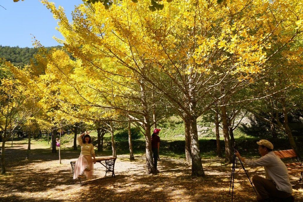 Saat berkunjung ke Wuling Farm, Anda bisa menikmati indahnya lautan pepohonan ginkgo berwarna kuning yang bergoyang tertiup angin dan bersinar terang.