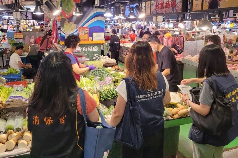 Inspektur departemen pertanian di pasar Taoyuan pada hari Minggu. Foto diambil dari CNA.